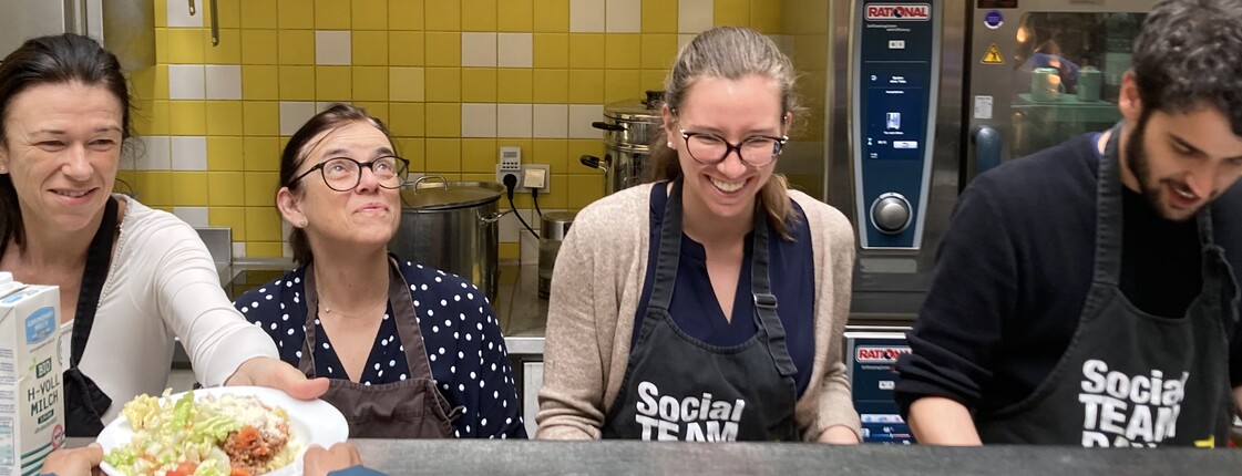 In verschiedenen Einrichtungen, wie der Gruft oder unserem Tageszentrum am Hauptbahnhof, werden täglich Mahlzeiten für obdachlose Menschen zubereitet. Bei unserem Social Team Day „Kochen“ bereiten Sie gemeinsam als Team Mahlzeiten für obdachlose oder armutsbetroffene Menschen zu. Dabei erleben Sie unmittelbar, wie gelebte Solidarität wirkt – wenn Dankbarkeit, Lächeln und Begegnungen über den Tellerrand hinausgehen.