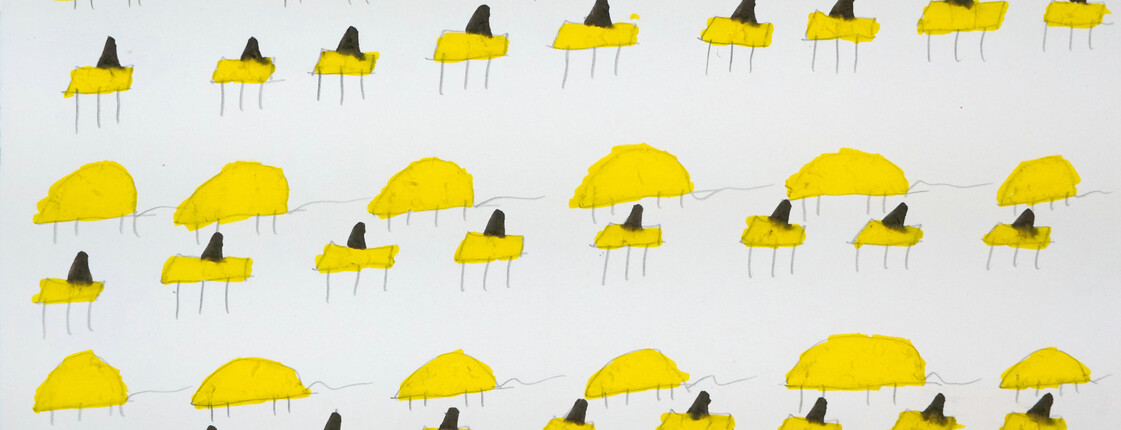 Für Sybille Böhm sind die Zeichnung und das Kolorieren Basiselemente ihres bildnerischen Schaffens. Dabei gibt es kein Entwerfen. Jeder Strich, jede Farbe muss auf Anhieb sitzen und werden nach eingehendem Überlegen ausgeführt. Meist in Postkarten- bis hin zum DIN A4-Format schafft sie mittels Bunt- und Bleistiften sowie Fineliner und Faserstiften auf Papier filigrane und fröhlich wirkende Arbeiten. Das Ineinander von Zeichnung und Farbe schafft eine eigene bewegte Atmosphäre. Ihr thematisches Universum sind meist Tiere, vor allem Vögel (Raben) oder Käfer, Ameisen und Bienen, aber auch Häuser, Botanisches und Autos, bei denen mit wenigen Strichen Geschwindigkeit vermittelt wird. Auffallend dabei ist die eigenwillige Komposition der Figurationen. Die im ersten Moment streng und fast konzeptionell wirkenden Serien lösen sich bei näherer Betrachtung in bewegte und organisch wirkende Formationen voller Lebendigkeit auf. Ihre meist humorvolle Haltung „erzählt“ wunderbare Stories vom Verhältnis des Einzelnen zum Gemeinschaftlichen, vom Dasein und vom Mitsein: Individuelles und Allgemeines verschränken sich zu berührenden Bildwerken.