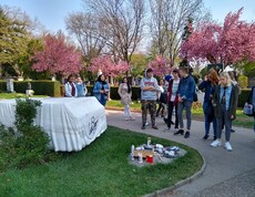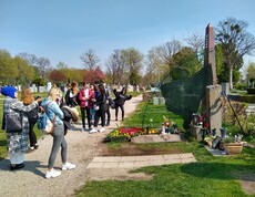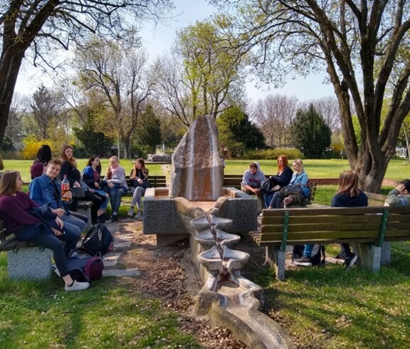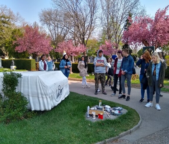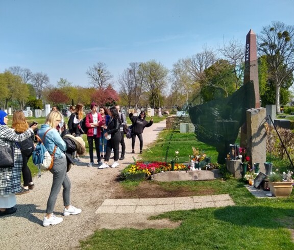 Im Anschluss fuhren wir zum Zentralfriedhof, wo wir uns neben den Ehrengräbern von Udo Jürgens und Falco sowie der Präsidentengruft in erster Linie auf die serbisch-orthodoxen und muslimischen Gräber konzentrierten, um den Balkan auch von dieser Seite zu beleuchten. Den Abschluss der Exkursion bildete der Park der Ruhe und der Kraft, wo die erschöpften Schülerinnen und Schüler kurz Pause machten.