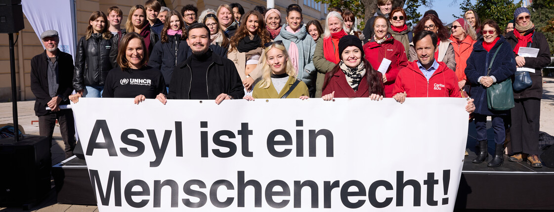 Am 14. Langen Tag der Flucht setzte ein breites Line-Up ein lautes Zeichen für Solidarität und Zusammenhalt am Platz der Menschenrechte in Wien. Veranstaltet wurde das Konzert von der Caritas und der UN-Flüchtlingsorganisation UNHCR Österreich. Mit dabei waren der mumok Frauenchor, Schauspielerin Valerie Huber, der Chorus Juventus der Wiener Sängerknaben, zahlreiche Geflüchtete und mehr als 100 Freiwillige und Passant*innen. Caritasdirektor Klaus Schwertner: „Geht es in den öffentlichen Debatten um die Themen Flucht, Asyl und Migration, dann werden radikale und populistische Töne immer lauter. Der Sound wird härter. Immer mehr politisch Verantwortliche stellen das Recht auf Asyl, stellen Menschen-, Grund und Freiheitsrechte ganz unverhohlen in Frage. Wir sind überzeugt: Wenn der Schutz der Menschenrechte politische Vorhaben verhindert, dann sind nicht die Menschenrechte das Problem – sondern jene Vorhaben, die Geflüchteten den Zugang zu Schutz vor Krieg und Verfolgung immer stärker erschweren sollen. Wir dürfen nicht zulassen, dass radikale Töne unsere Herzen verschließen und die Debatten vergiften. Es ist beides möglich: Wir können Grenzen sichern und gleichzeitig Menschen schützen. Unser Plädoyer lautet, diesen Weg tunlichst im Einklang mit geltendem Recht einzuschlagen.“