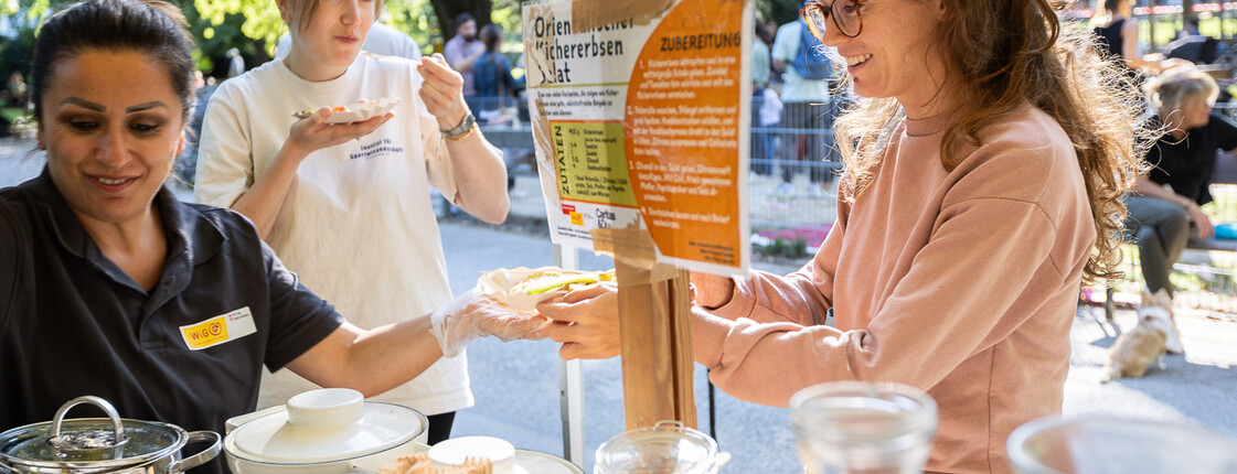 Selber kochen, kosten oder einfach nur zuschauen, zuhören und mitreden – jede*r ist bei der Pop up-Küche herzlich willkommen! Die spielerische Wissensvermittlung lädt dazu ein, sich mit gesunder Ernährung auseinanderzusetzen und auch Anregungen und Rezepte für den eigenen Speiseplan mitzunehmen. Die Kochaktionen werden mit einer mobilen „Pop-up-Küche“ von erfahrenen Community-Köch*innen der Caritas Stadtteilarbeit umgesetzt. „Gesundheit erleben – einfach mitmachen!“ ist ein Angebot der Wiener Gesundheitsförderung – WiG im Rahmen des Programms „Gesunde Bezirke“.